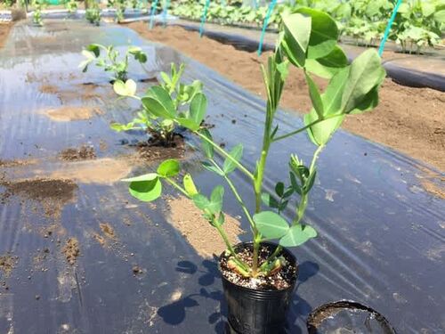 育苗していた落花生「おおまさり」と 購入苗モロヘイヤを定植しました 準備しておいた畝に7株を植えつけました モロヘイヤは購入苗です 4月下旬に種蒔きをしたのですが 上手く育たず諦めました 1ポットに沢山の苗が生えていたので バリバリと根を切り株分け…